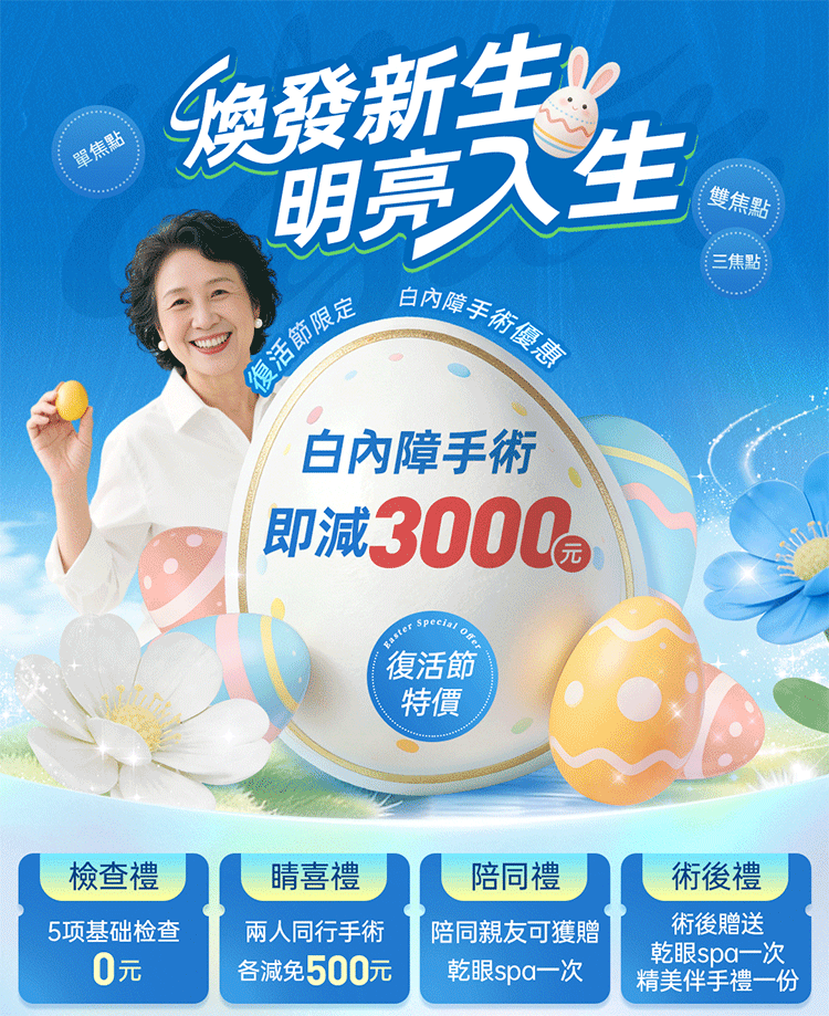 了解更多 >當視力下降影響日常生活(如看不清藥瓶、過馬路困難等)即可手術。